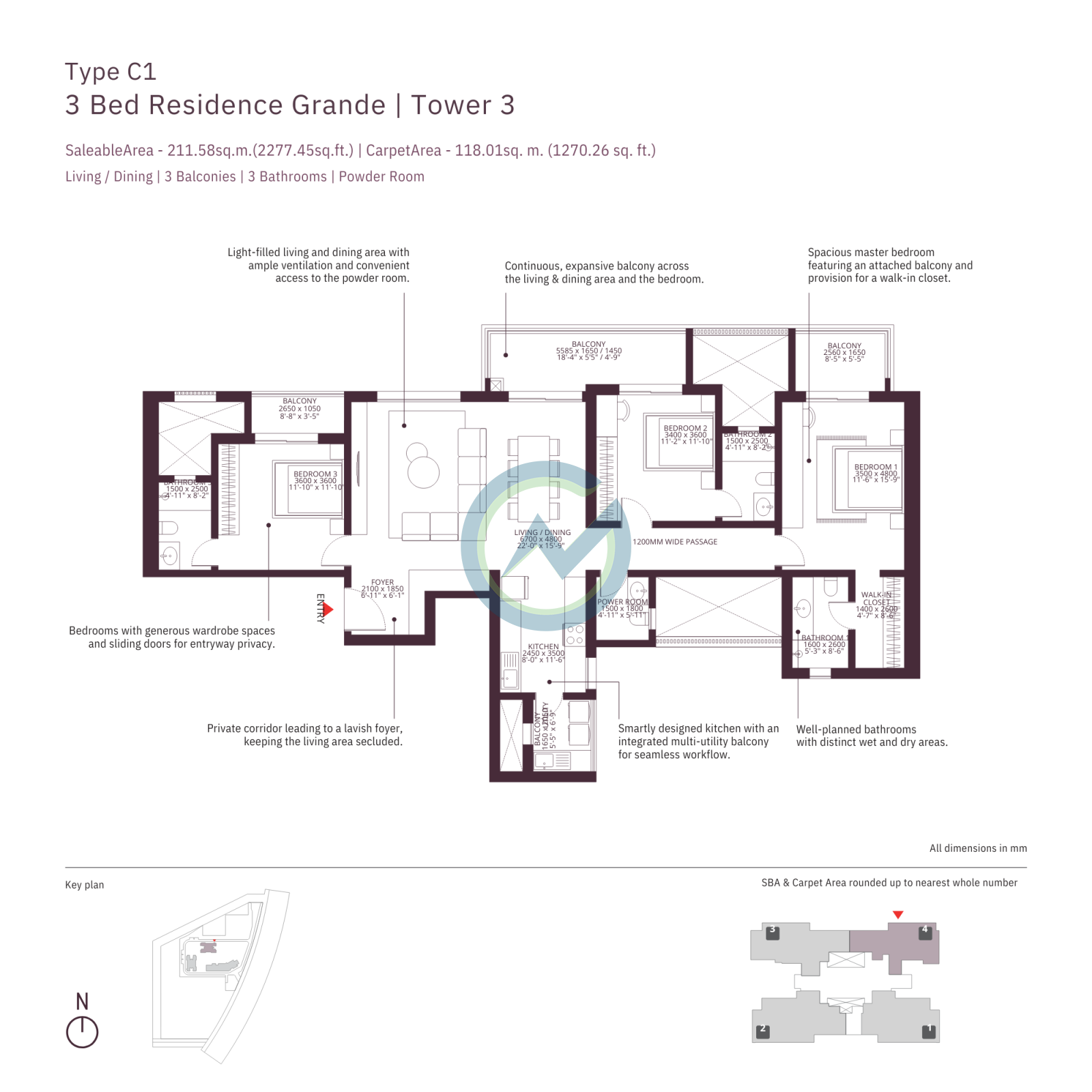 The Sobha Crescent Sector 63A Gurgaonfloor plans are designed with: